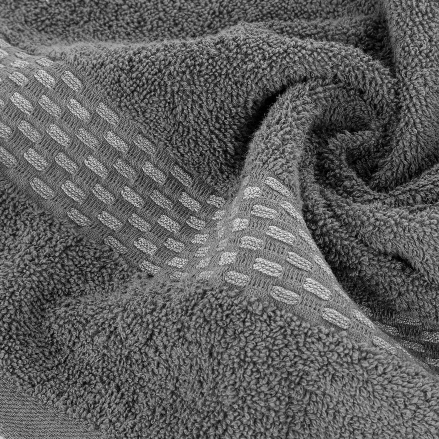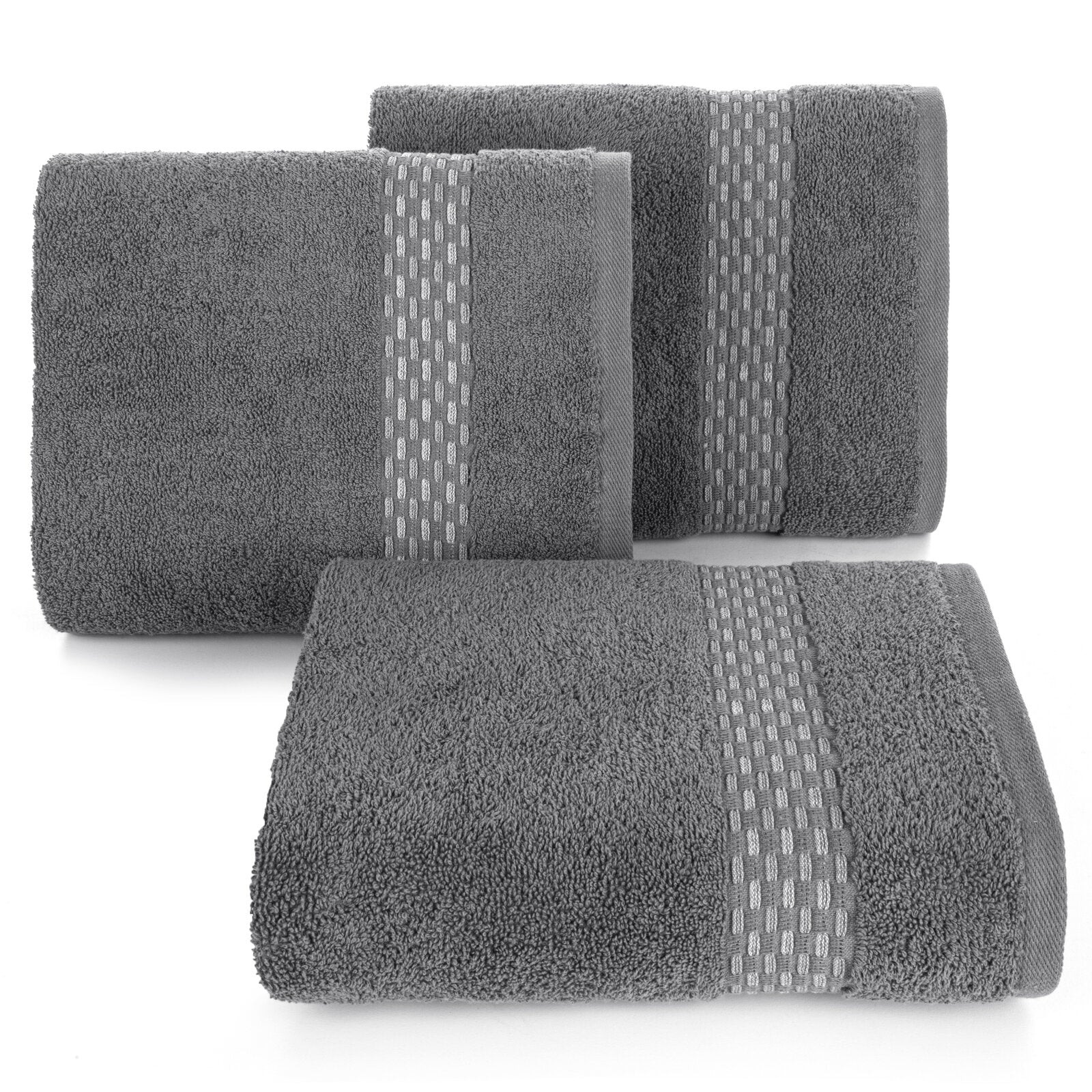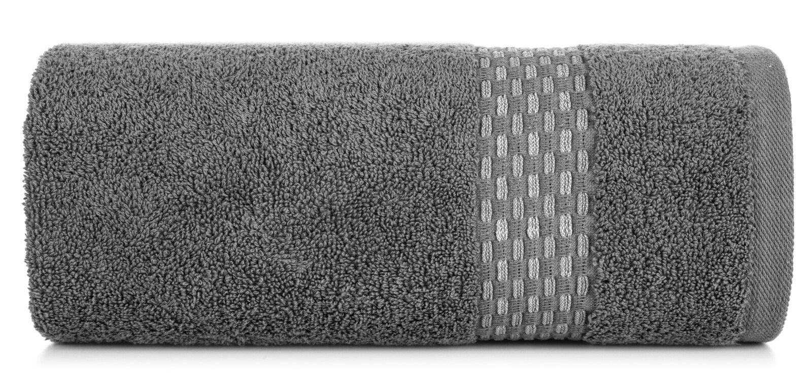 Dvieļa ar dekoratīvu žakarda apmali platums: 70 cm, garums: 140 cm, krāsa: tērauda, svars: 500 GSM, sastāvs: Sastāvs: 100% kokvilna; 95% kokvilna, 5% poliesteris