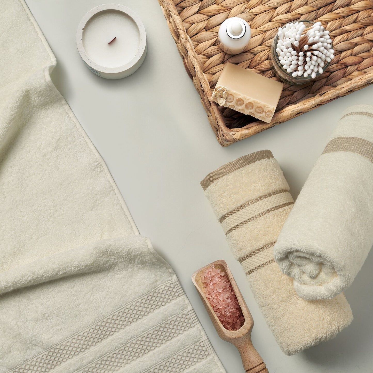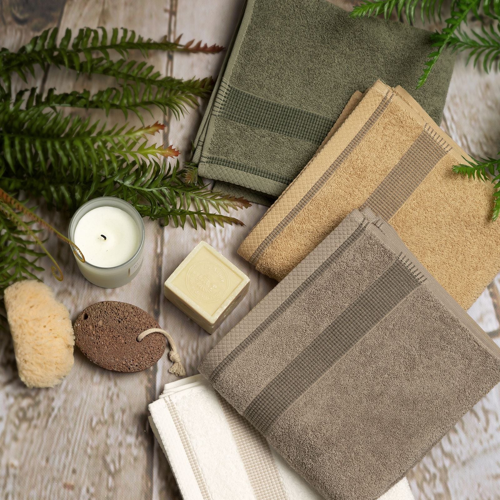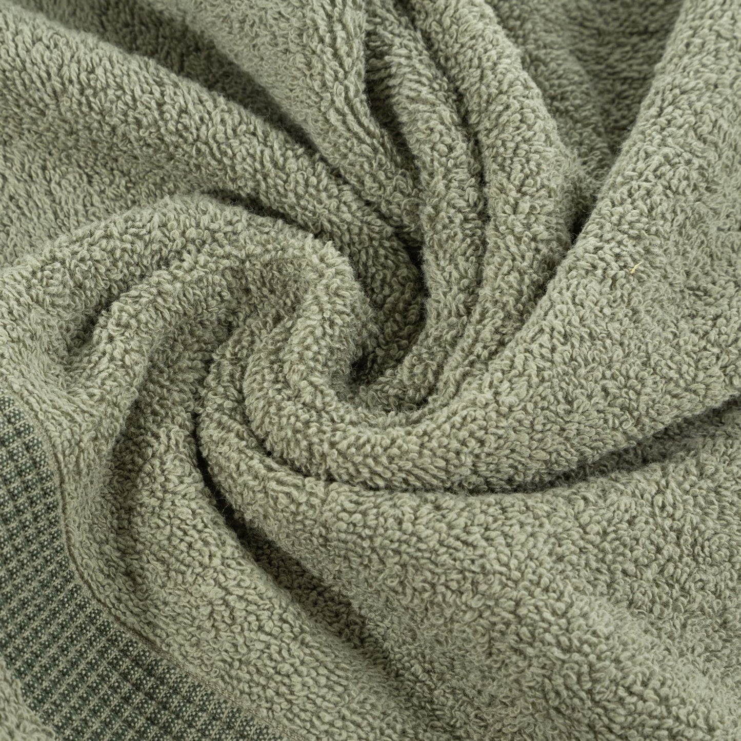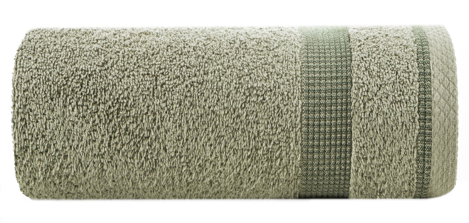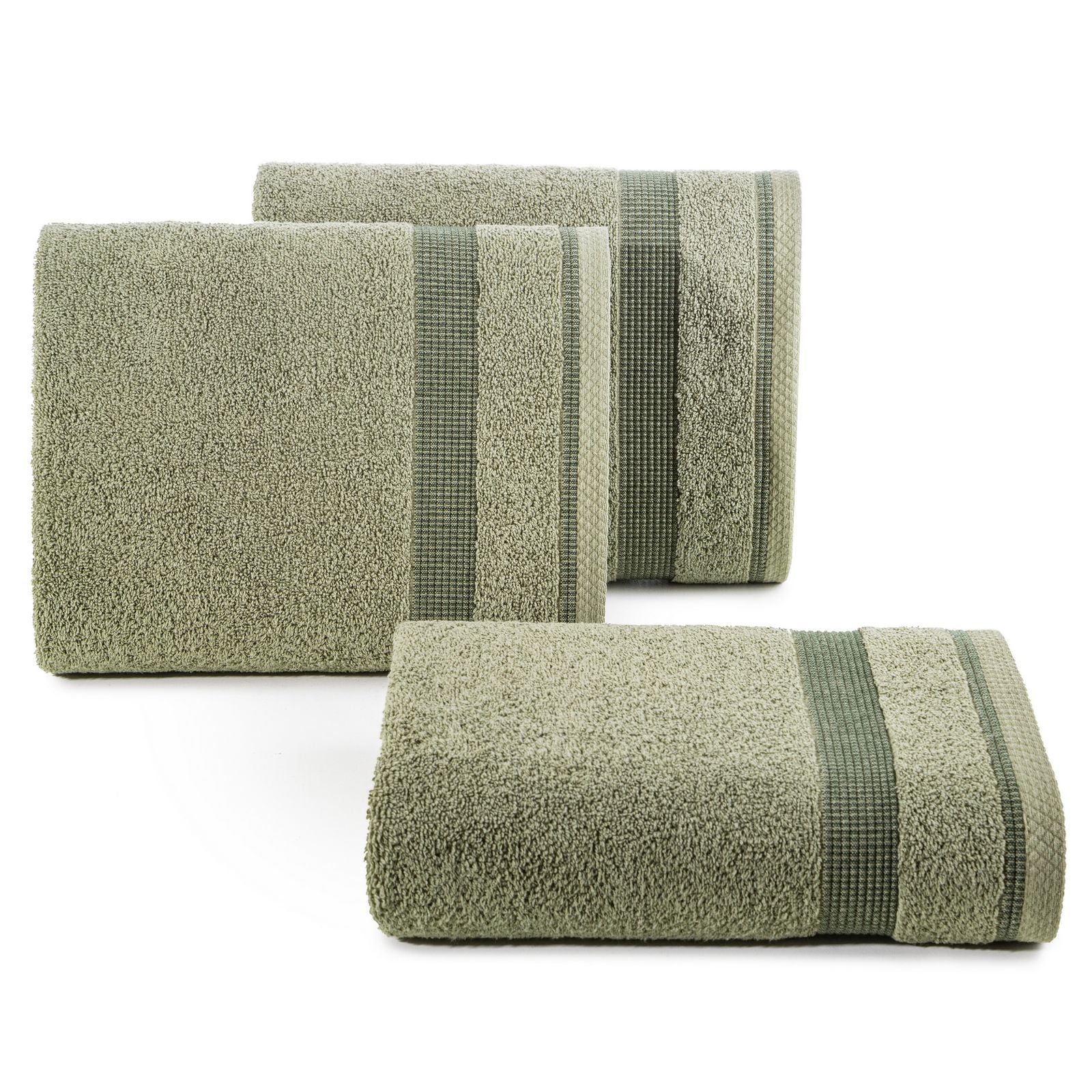 Dvieļu ar dekoratīvu svītrainu malu platums: 70 cm, garums: 140 cm, krāsa: olīvu, svars: 500 GSM, sastāvs: Sastāvs: 100% kokvilna; 99% kokvilna, 1% poliesteris