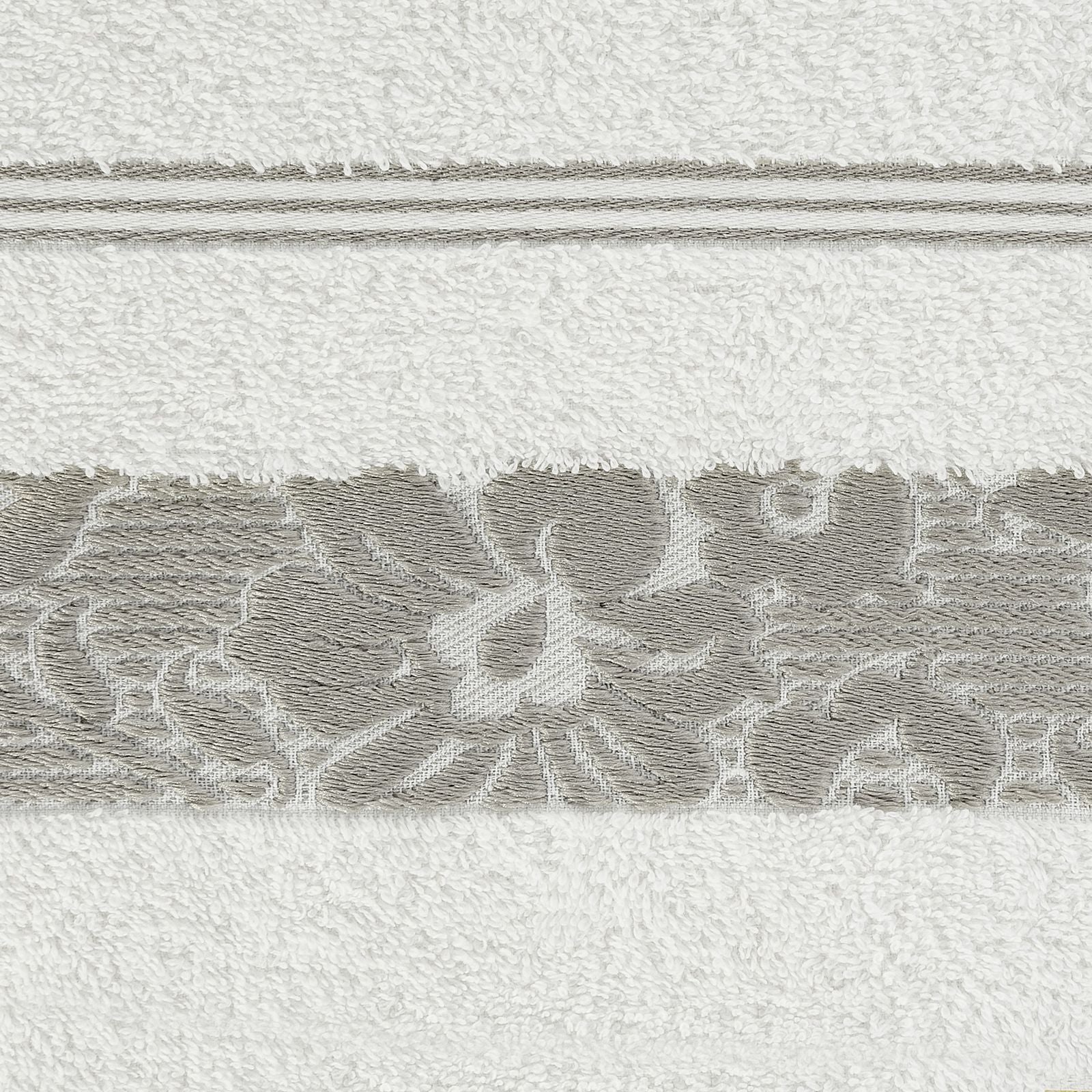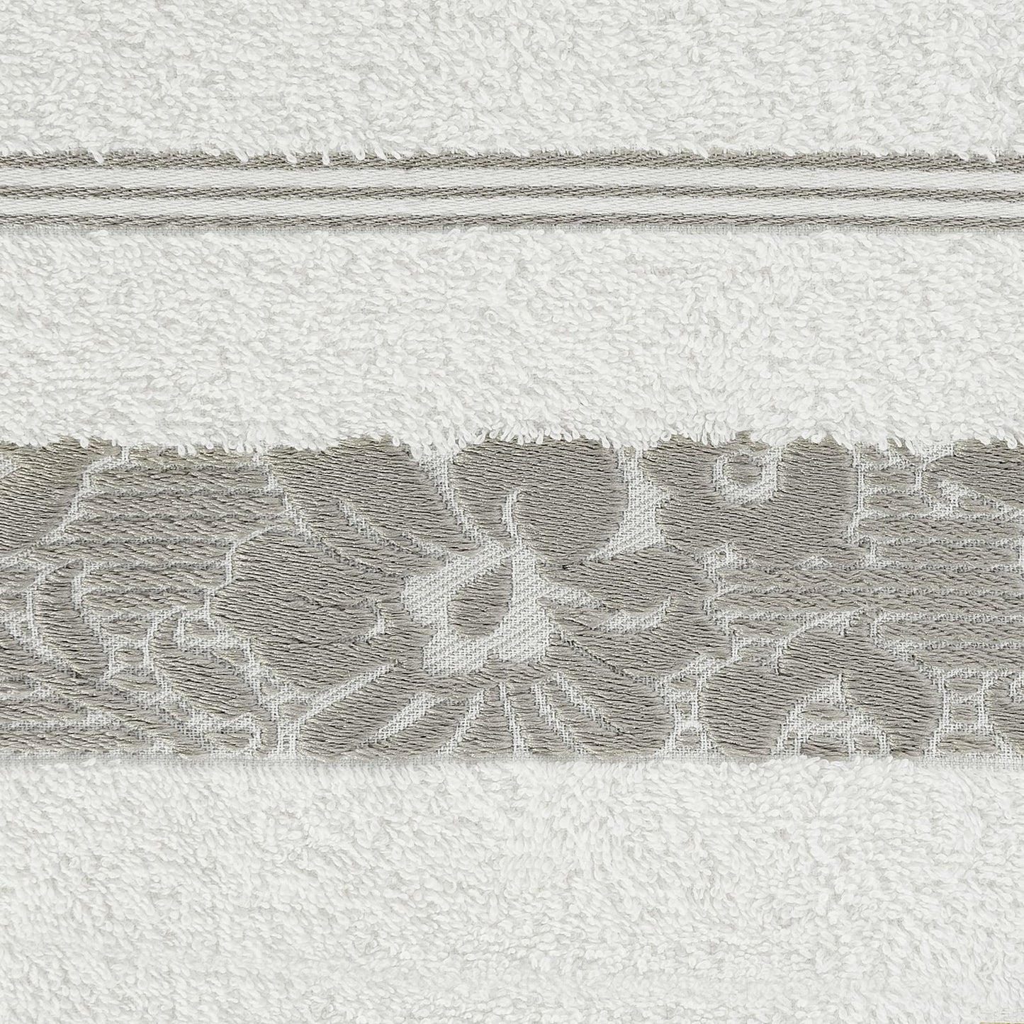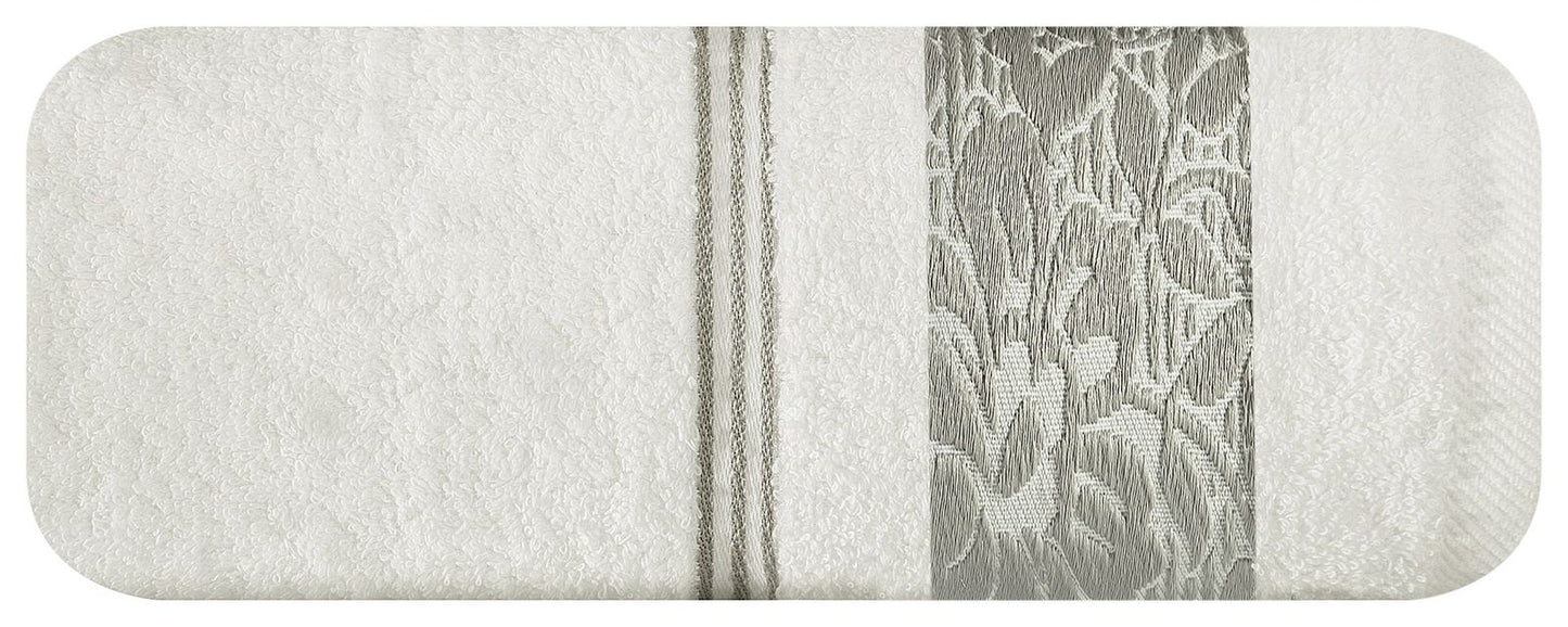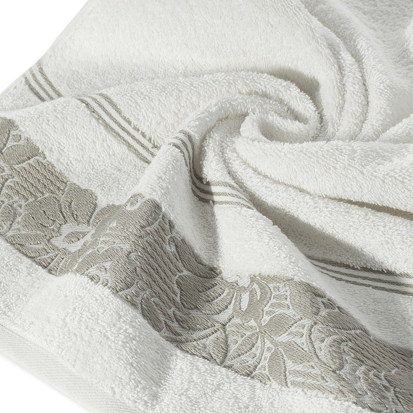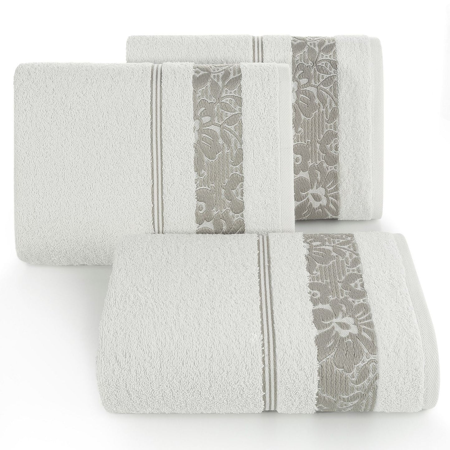 Elegants vannas dvielis no mīksta un uzsūcoša kokvilnas frotē, rotāts ar žakarda apmali ar ziedu rakstu atbilstošā krāsā. Ļoti mīksts un patīkams platums: 70 cm, garums: 140 cm, krāsa: krēmkrāsa, svars: 500 GSM, sastāvs: Sastāvs: 100% kokvilna; 70% poliesteris, 30% kokvilna.
