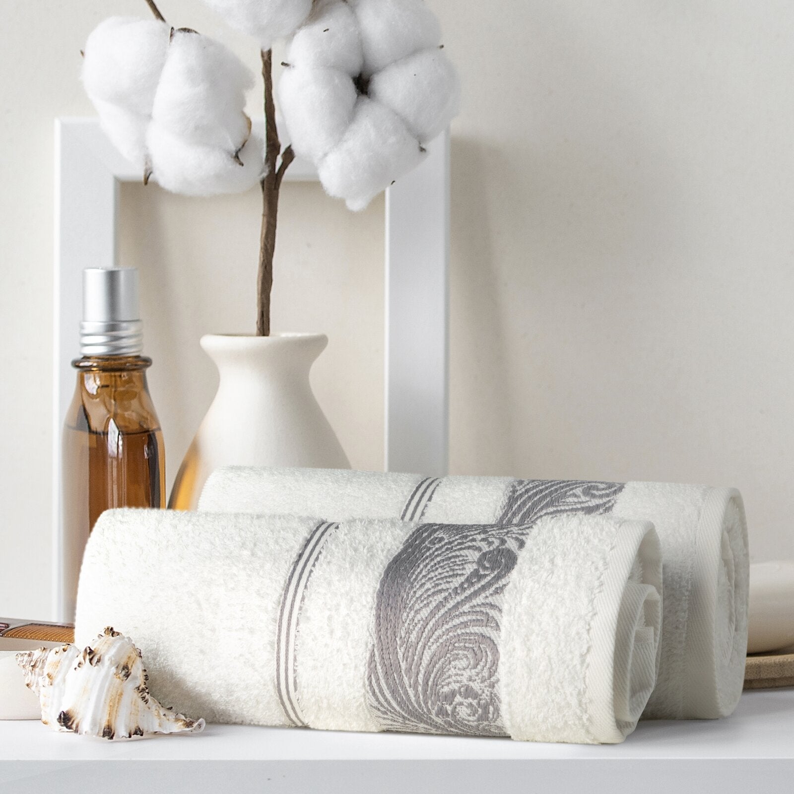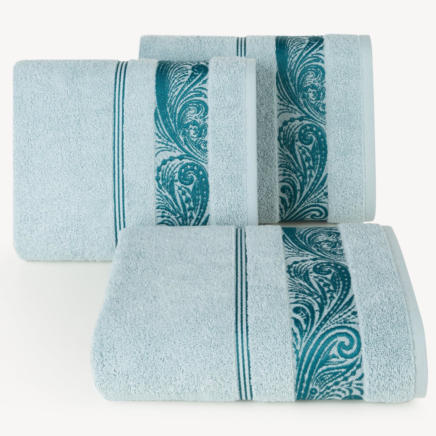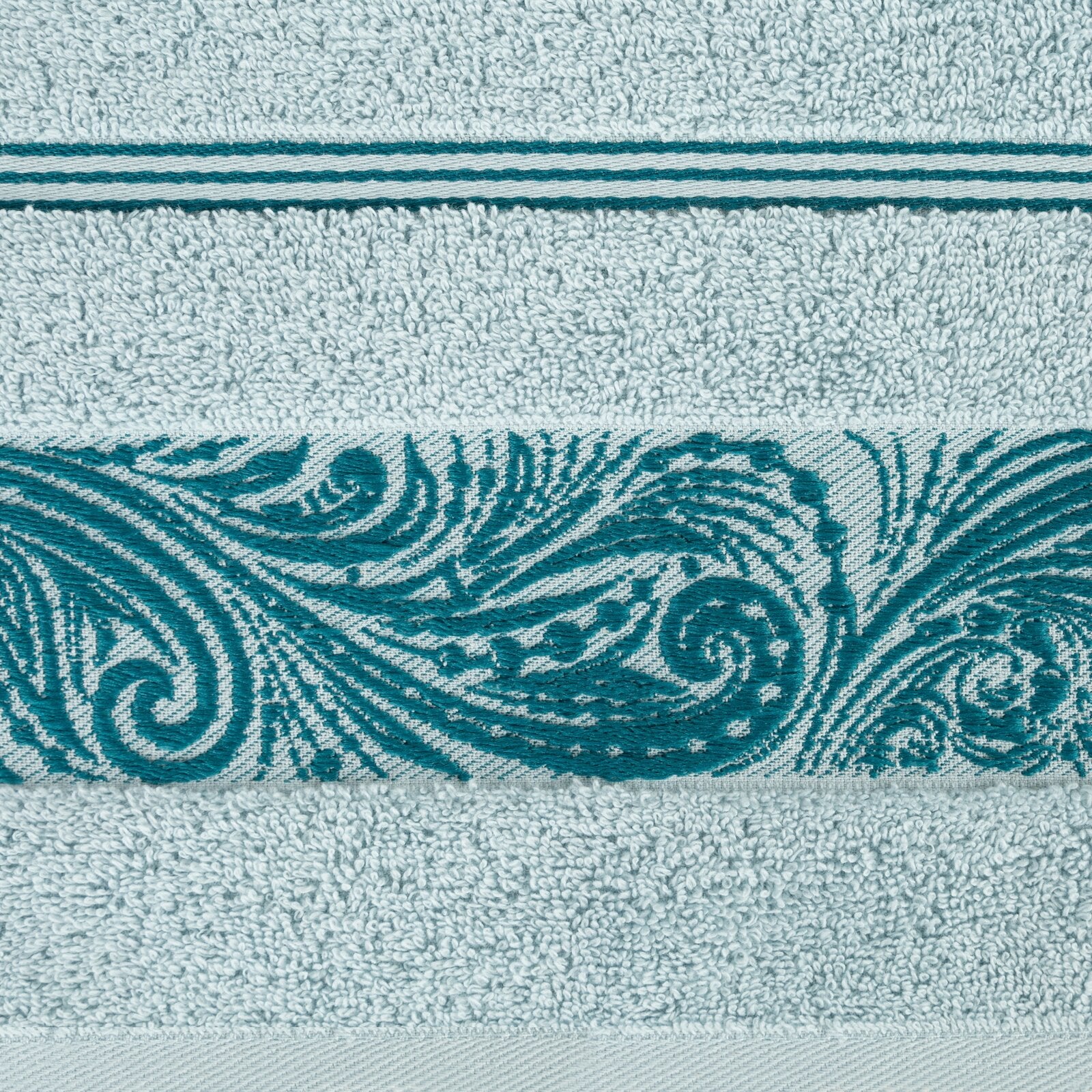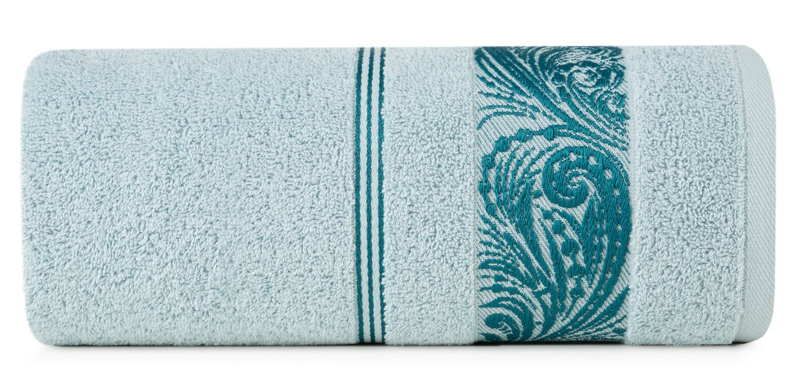 Elegants vannas dvielis no mīksta un uzsūcoša kokvilnas frotē, rotāts ar žakarda apmali ar ziedu rakstu atbilstošā krāsā. Ļoti mīksts un patīkams platums: 70 cm, garums: 140 cm, krāsa: piparmētra, svars: 500 GSM, sastāvs: Sastāvs: 100% kokvilna; 70% poliesteris, 30% kokvilna.