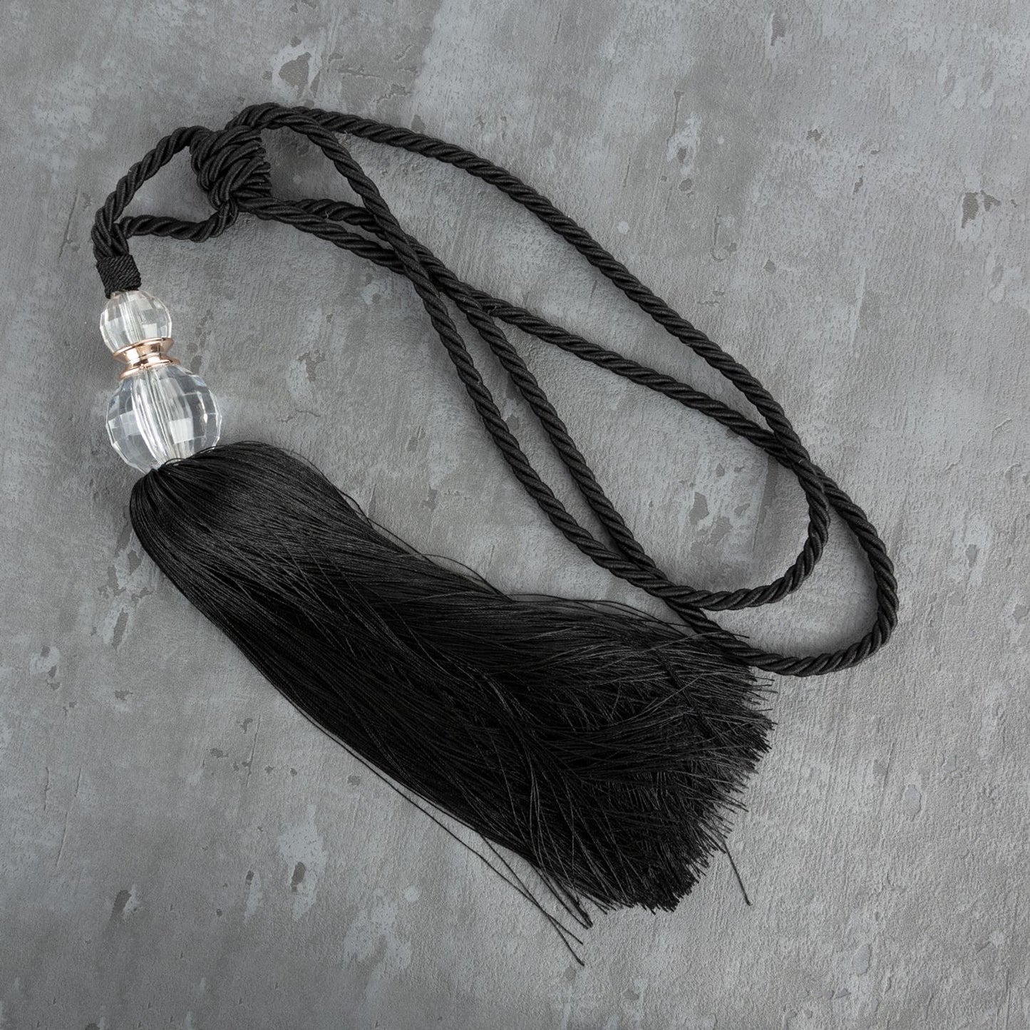 Dekoratīvā aukla aizkariem platums: 74 cm, garums: 35 cm, krāsa: melna, sastāvs: Materiāls: 100% poliesteris.