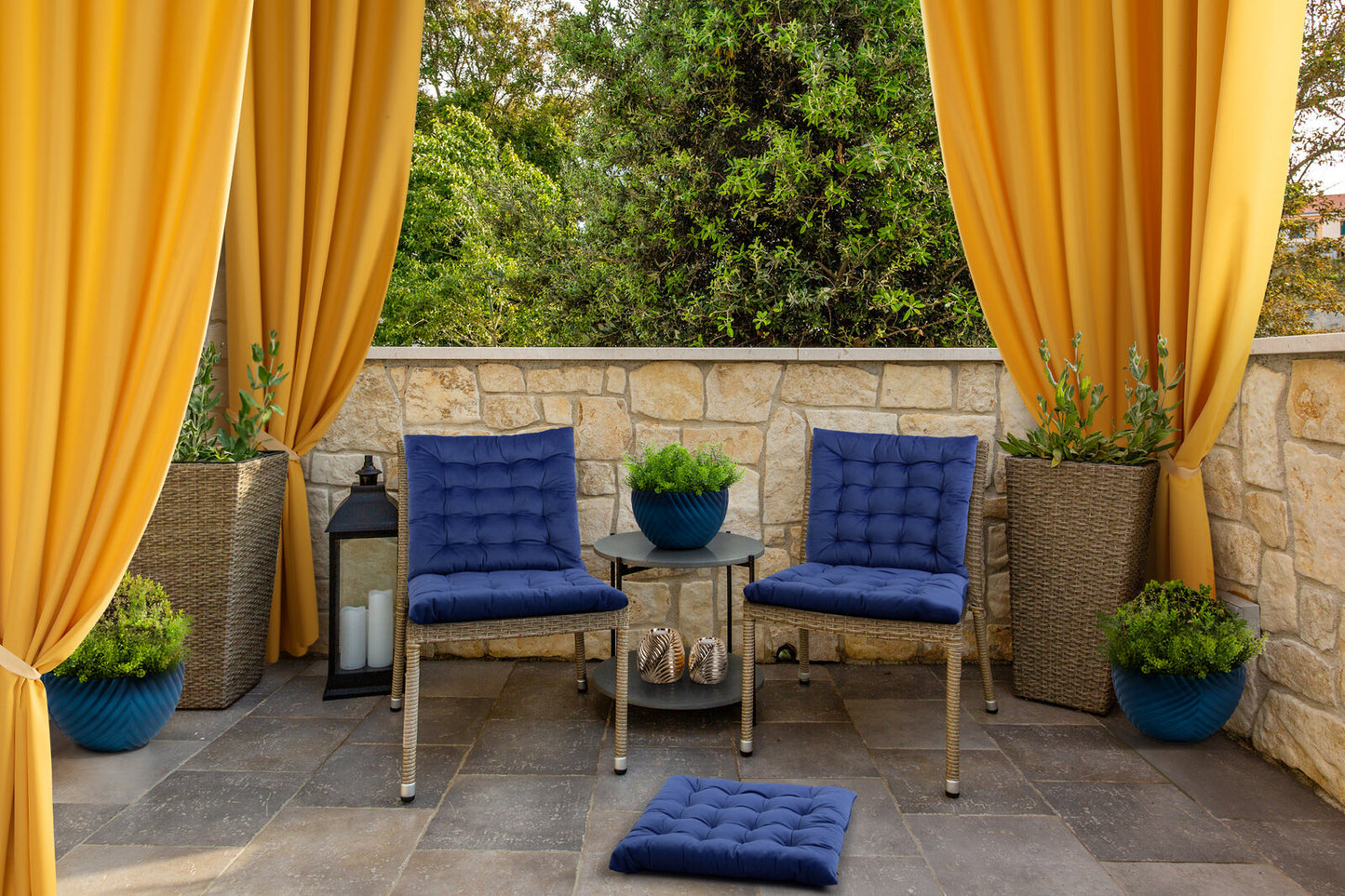 Sēdekļa platums: 40 cm, garums: 40 cm, krāsa: zila, sastāvs: Sastāvs: 100% poliesteris.