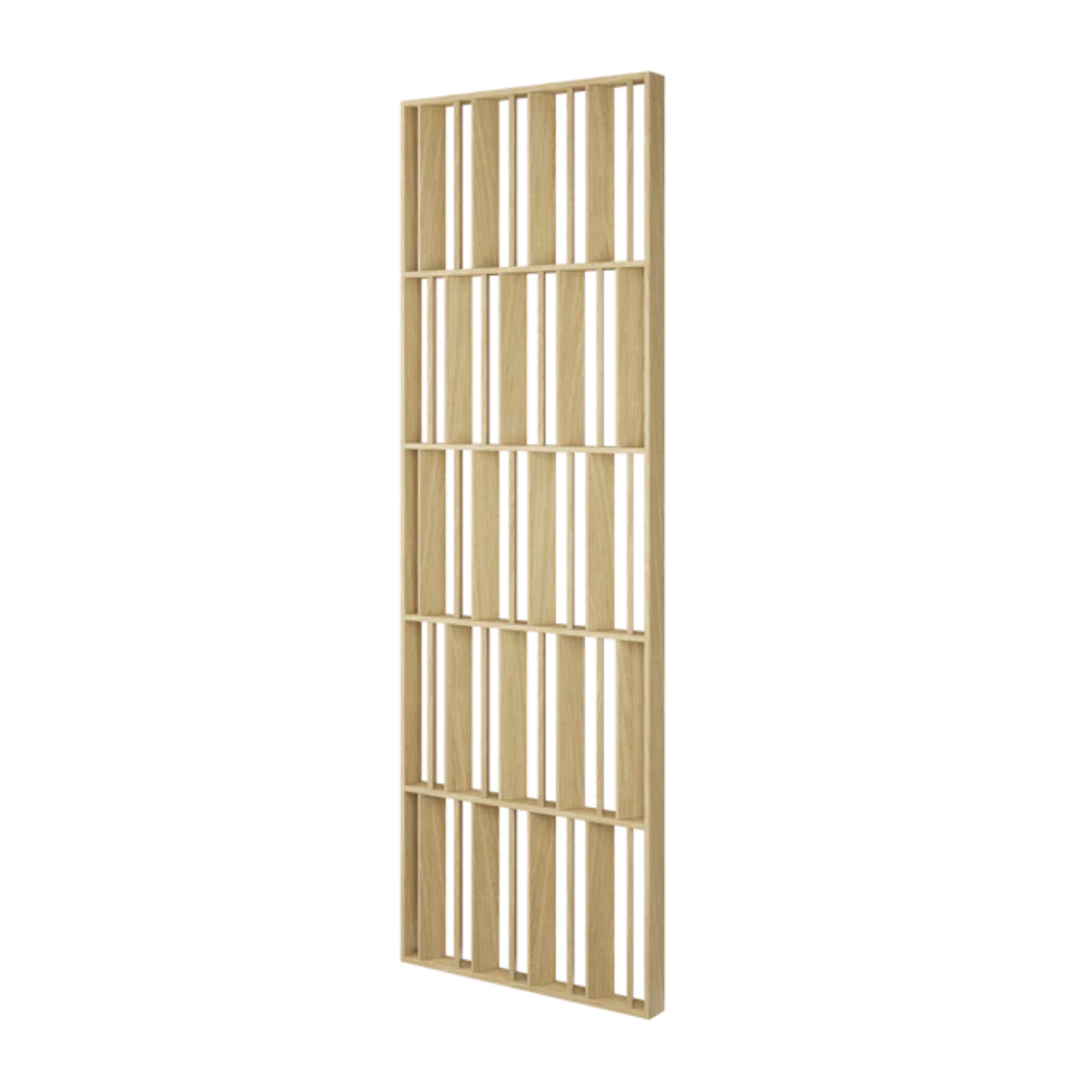 Osaka siena ir minimālistisks dekoratīvs panelis, kas ļauj diskrēti sadalīt zonas jūsu mājās, vienlaikus saglabājot gaišu un harmonisku sajūtu. Tās regulārais vertikālo un horizontālo profilu ritms ienes telpā kārtību, mieru un Japandi stilam raksturīgo raksturu.