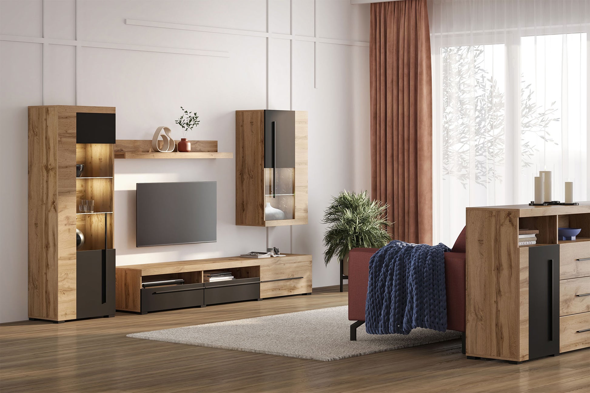 Rogos piedāvā funkcionālas un stilīgas sienas vienības, kurās ir vieta televizoram, plaukti grāmatām un dekorācijām, kā arī slēgti uzglabāšanas skapji.
