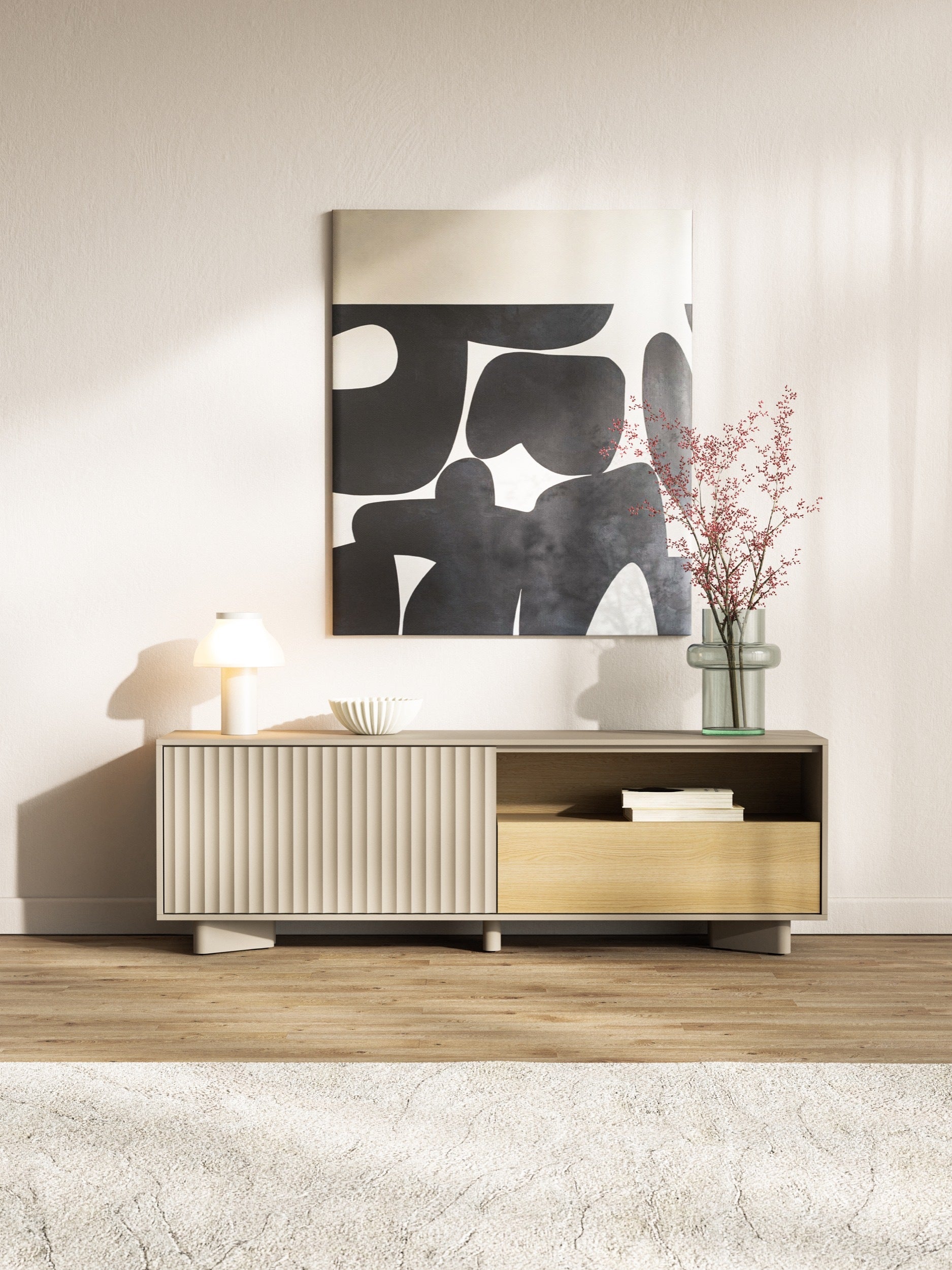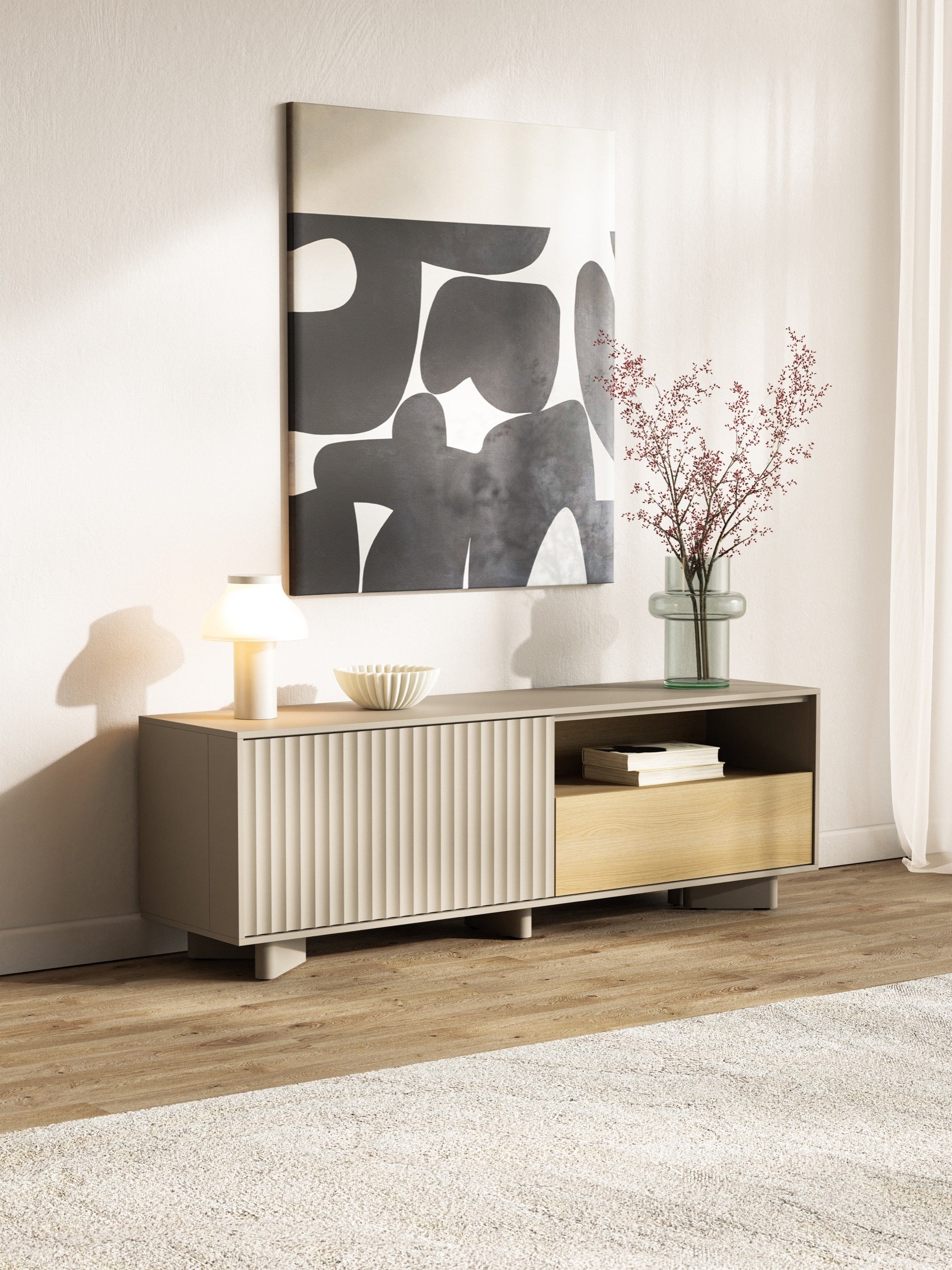 TV skapis Distri Riffle 140/46/35 cm Vičencas ozols/kašmirs