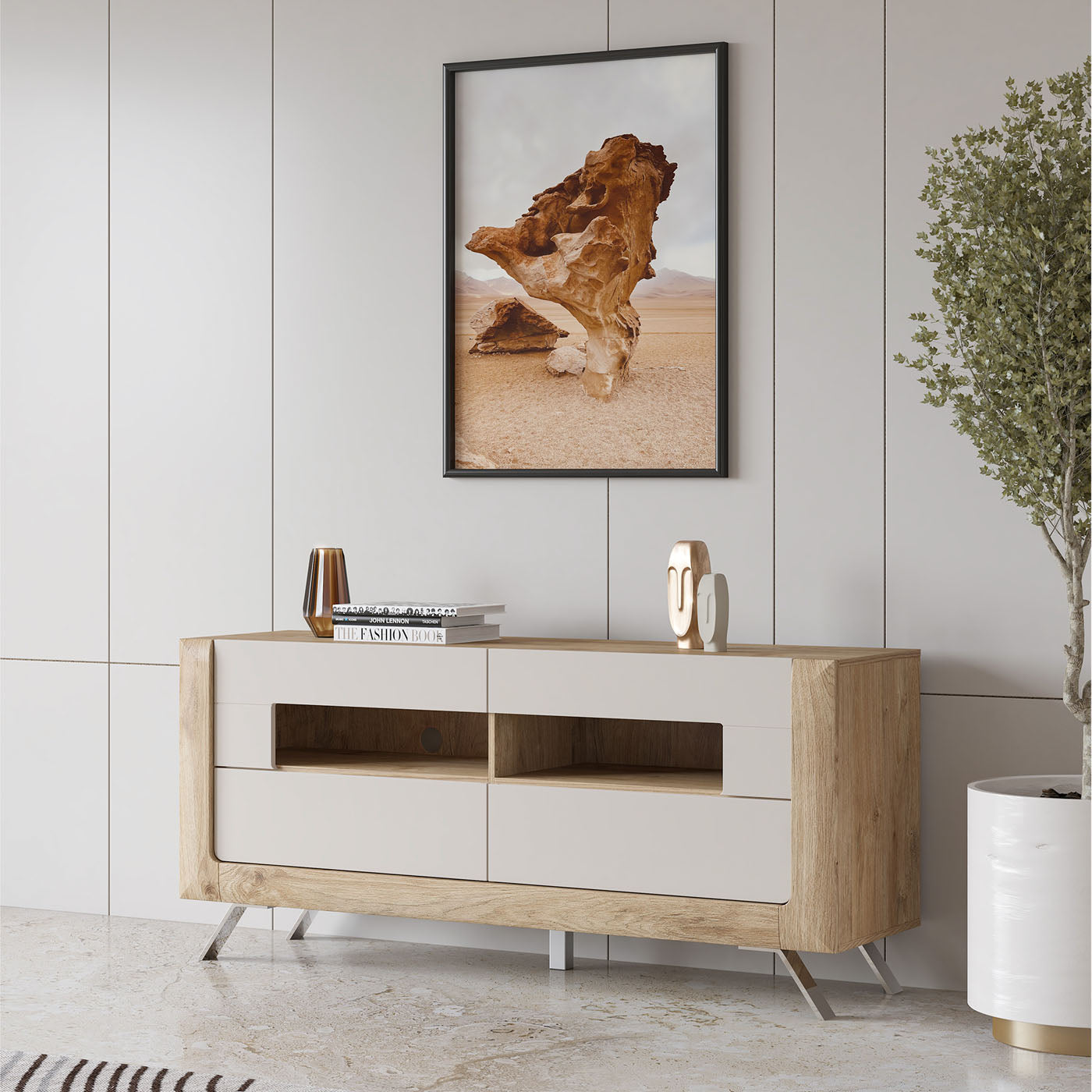 TV skapis Kavasari 161/48/73 cm Hamilton ozols/kašmirs