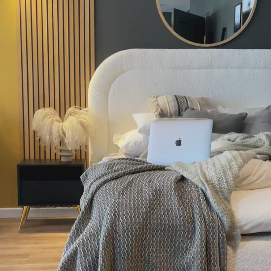 FELO naktsgaldiņš būs lieliska izvēle cilvēkiem, kuri vēlas mainīt savu guļamistabu. Mēbelēm ir atvērts padziļinājums un ietilpīga atvilktne , kurā var noslēpt visas nepieciešamākās lietas. Papildu priekšrocība ir ietilpīga galda virsma, uz kuras var novietot grāmatu vai telefonu. Priekšpusē ir gaumīgs dekors lameļu veidā , kas piešķir mēbelēm oriģinālu izskatu.