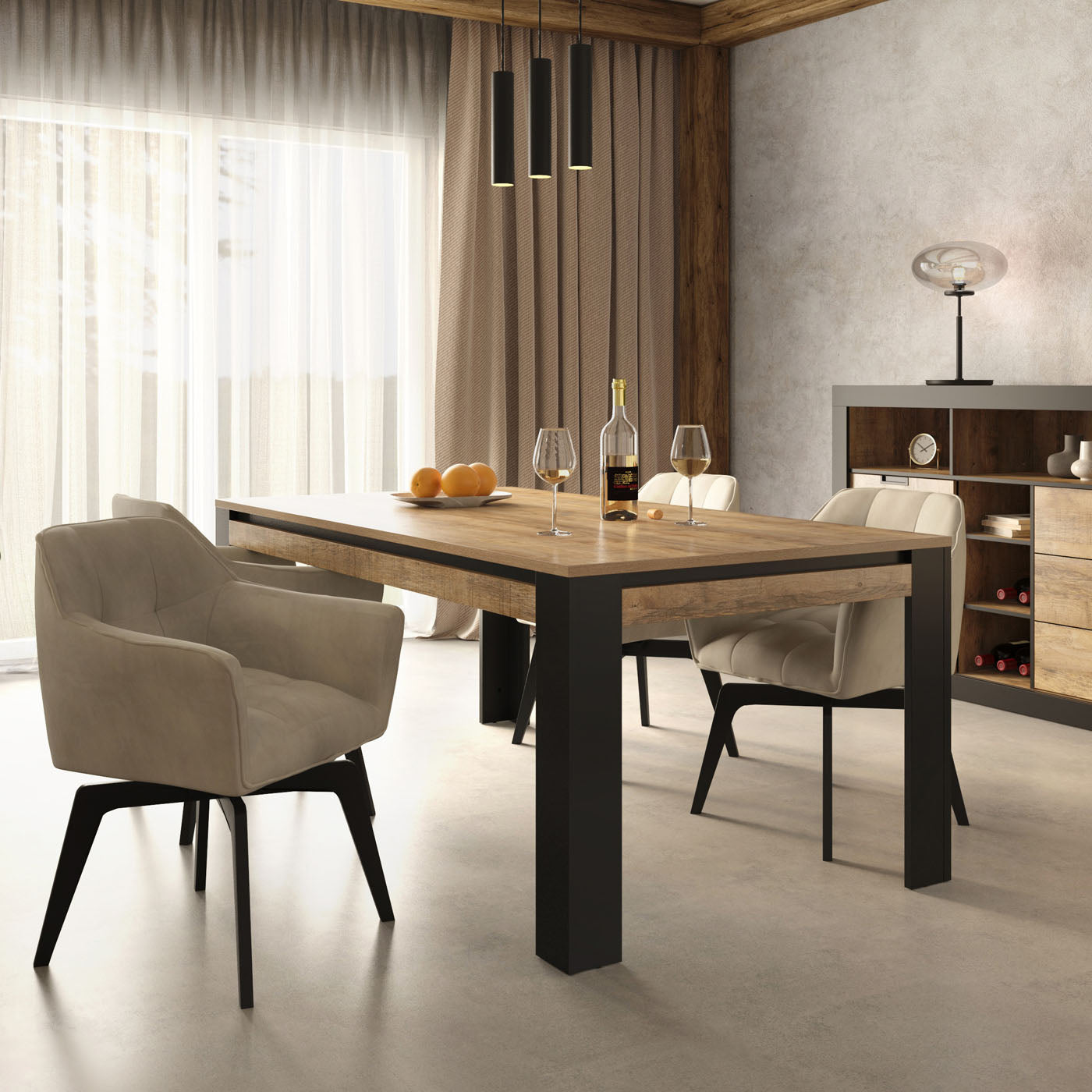 Samdal ozols piesaista uzmanību ar savu silto, dabisko apdari, savukārt kontrastējošie melnie akcenti padara kolekciju elegantu un atšķirīgu.