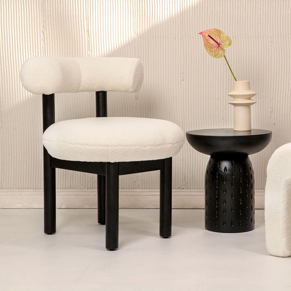 Augstas kvalitātes materiāls ir mīksts un patīkams pieskārienam. Melnā koka konstrukcija nodrošina stabilitāti un izturību.
