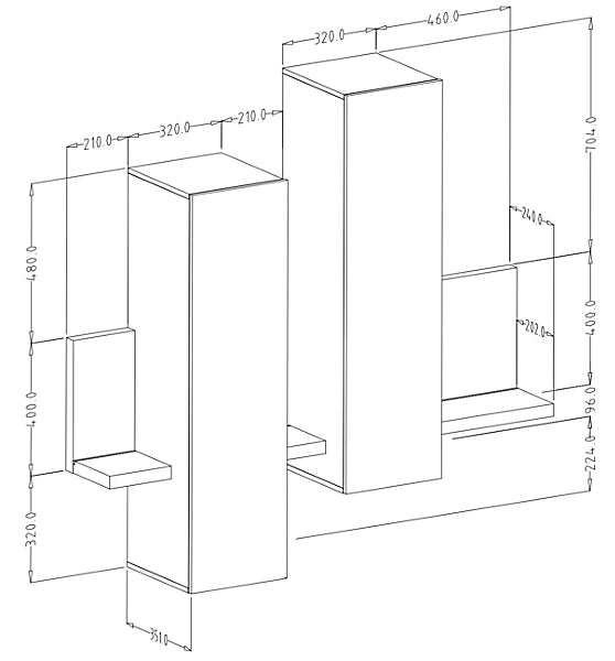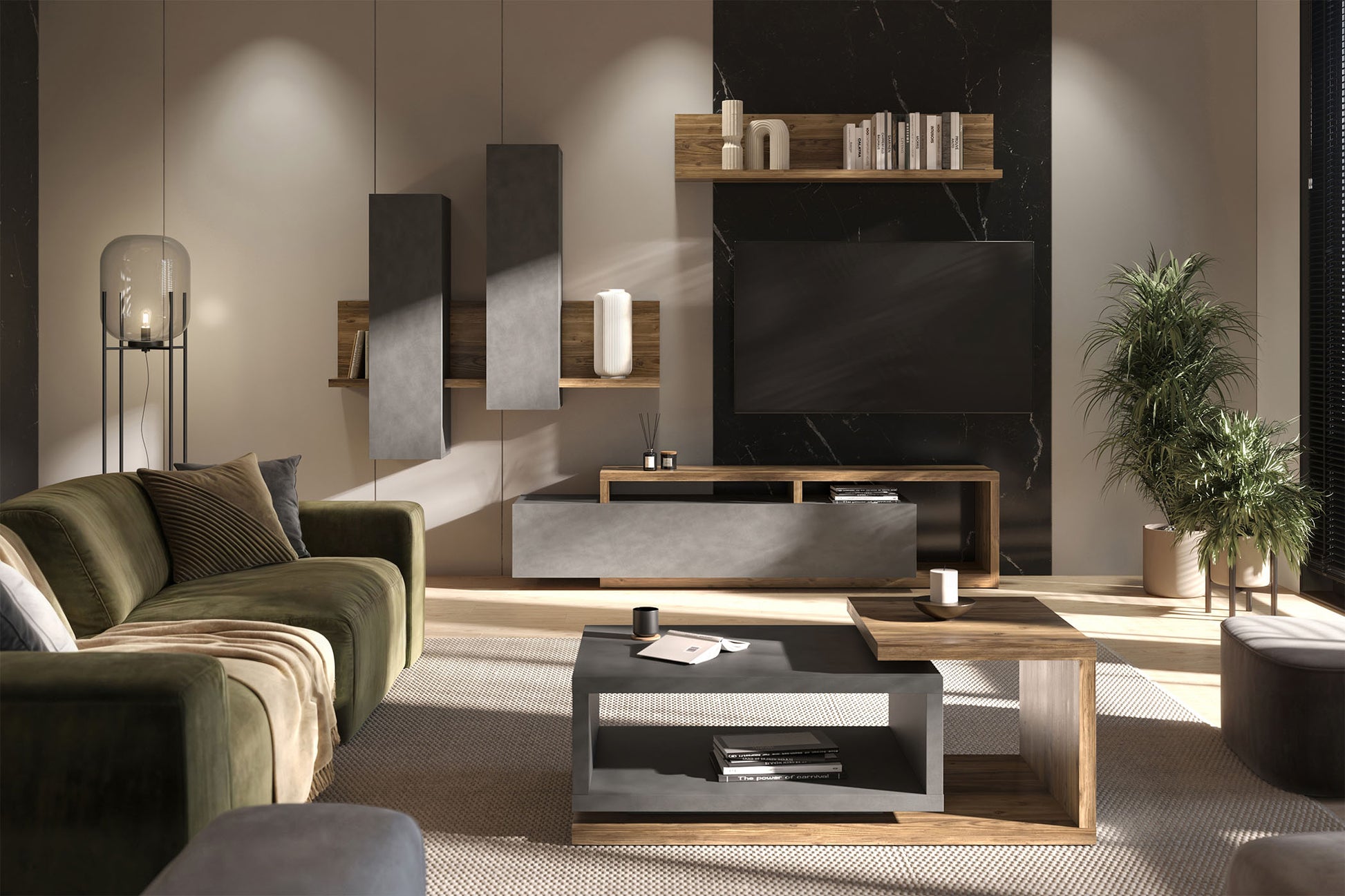 Asimetriskas struktūras veido unikālu dzīvojamo sienas vienību, kas apvieno funkcionalitāti un moderno mākslu, un abām ir svarīga loma mūsdienīgā interjerā.