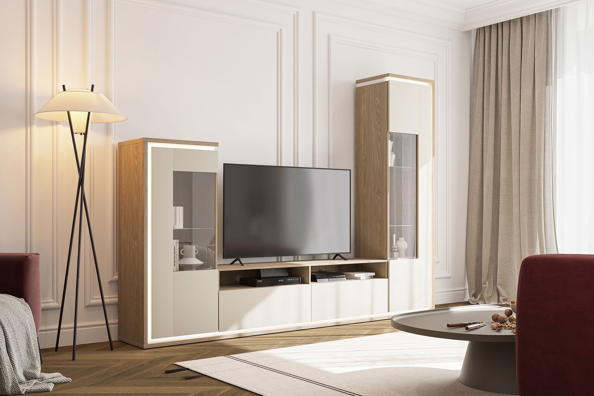 Dors kolekcija ir mūsdienīgas elegances kvintesence, kas ir ideāli piemērota tiem, kas novērtē funkcionalitāti un minimālistisku dizainu. To raksturo smalka gaišu, neitrālu krāsu un dabīgā koka kombinācija, kas piešķir tai izsmalcinātu, siltu raksturu.