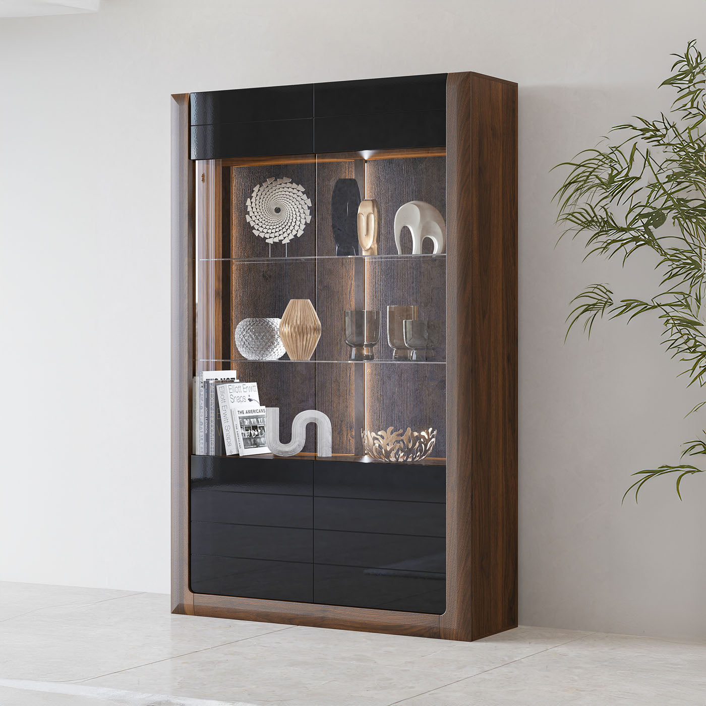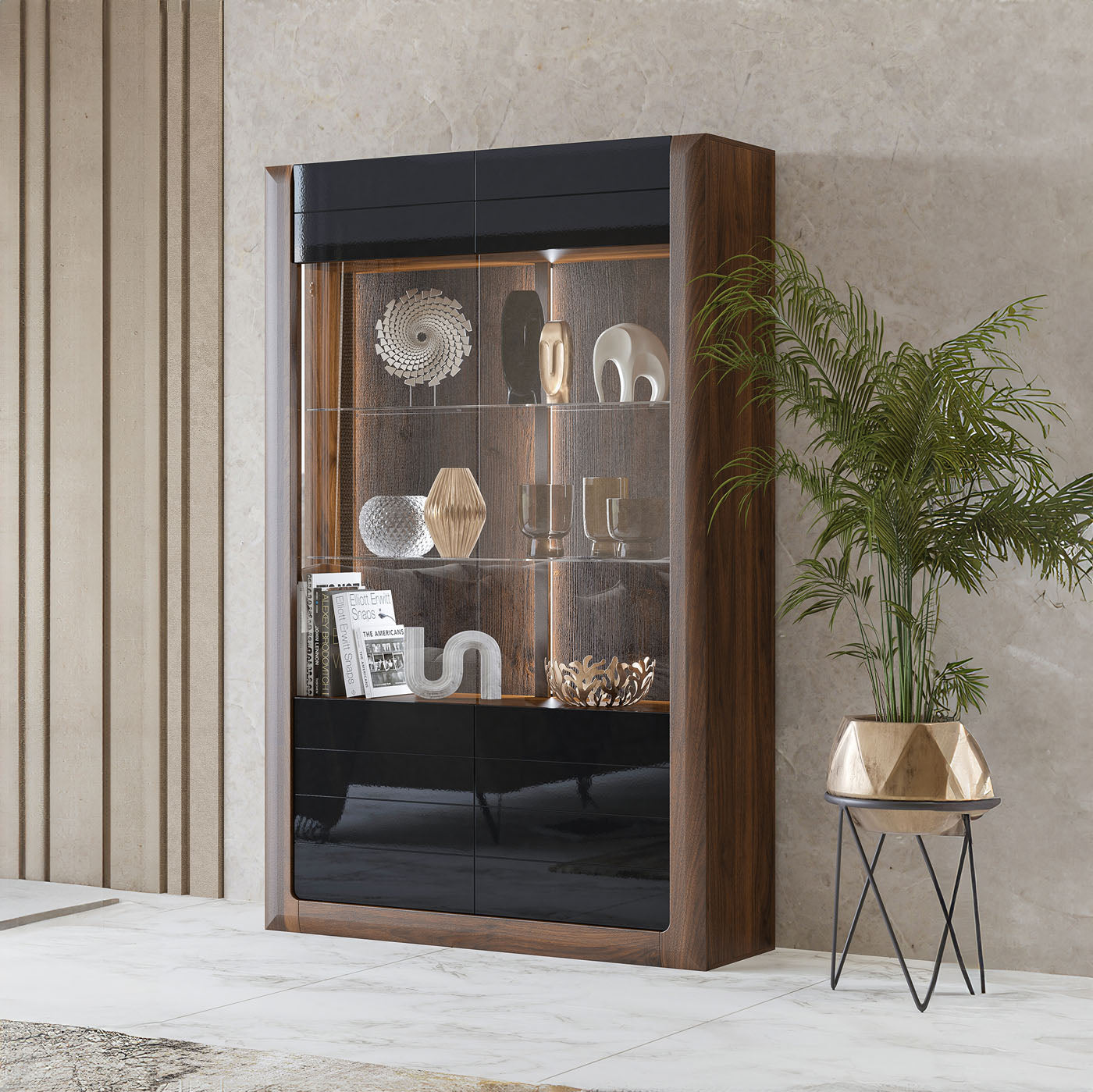 Kavasari ir eleganta un moderna mēbeļu kolekcija, kas pieejama divās krāsu variācijās. Pirmā kolekcija apvieno tumšu Kolumbijas valrieksta toni ar pārsteidzošu melnu spīdumu un melnu stiklu uz augšējā paneļa, piešķirot interjeram drosmīgu un greznu sajūtu.