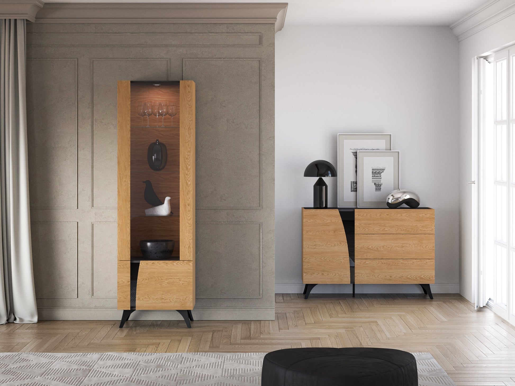 Skapis Toskana 189/57/38 cm ozols/melns