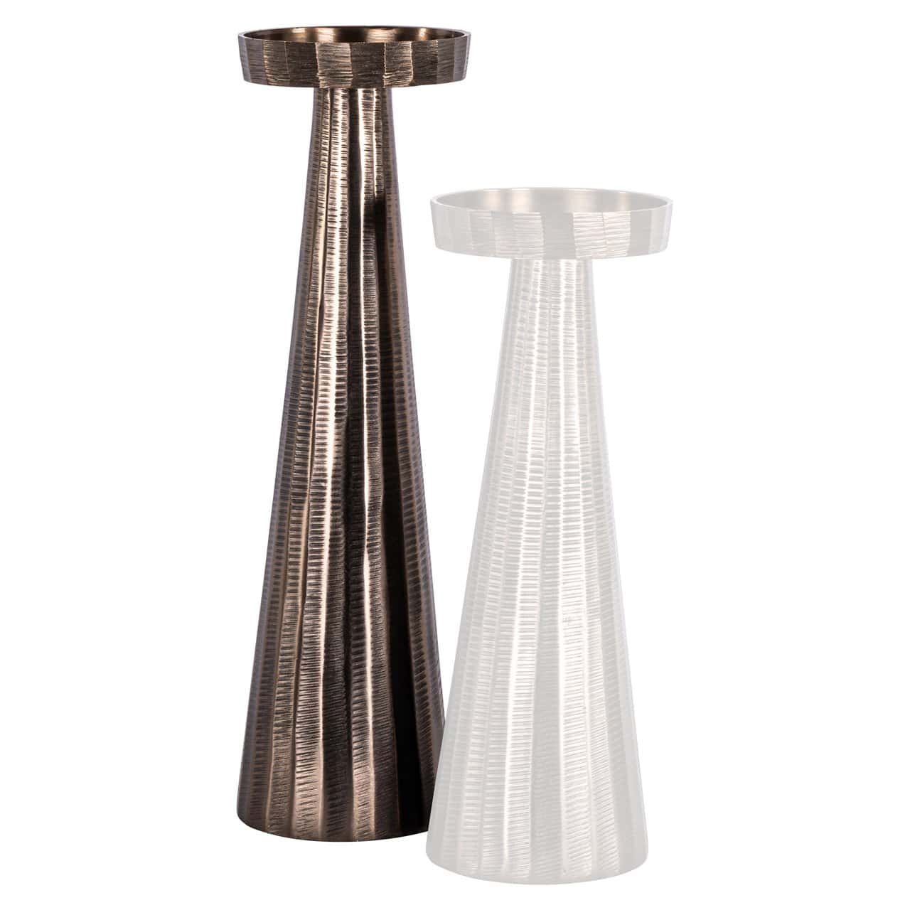 Šim mazajam svečturim ir kompakta forma ar skaidru vertikālu struktūru. Apdarei ir bronzas krāsa ar maigu spīdumu, radot siltu izskatu.